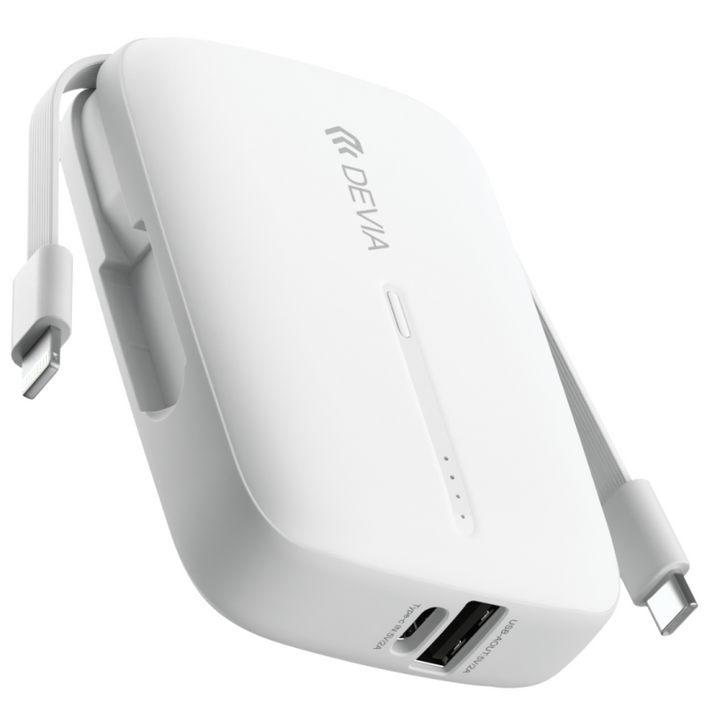 Power Bank Double Câbles (Lightning + Type-C) 10000mAh - DEVIA EP158 - Blanc