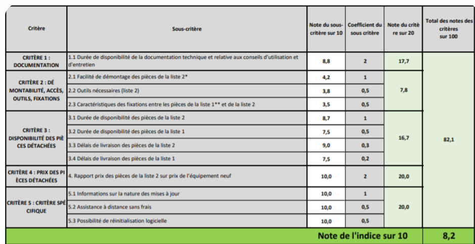 | Indice de réparabilité |